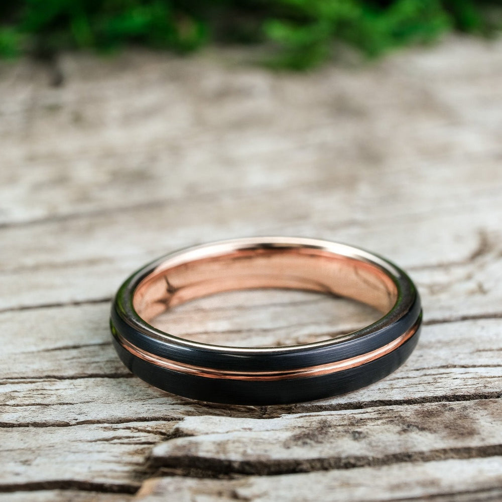 Rounded Black Brushed / Rose Gold Stripe - 4mm