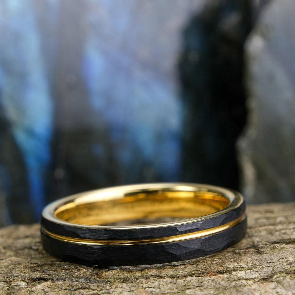 Black Hammered / Yellow Gold Stripe & Interior - 4mm