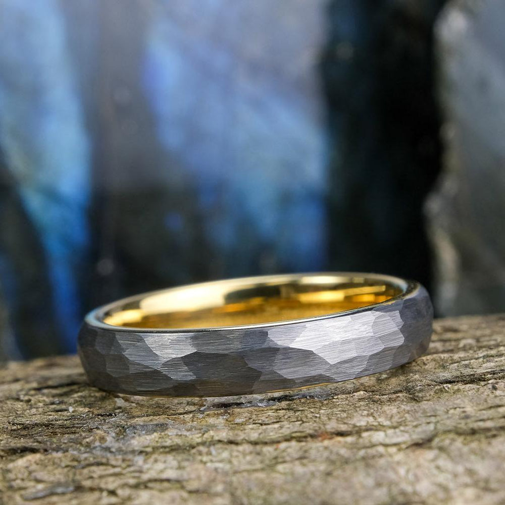 Hammered Silver Band / Yellow Gold Interior - 4mm