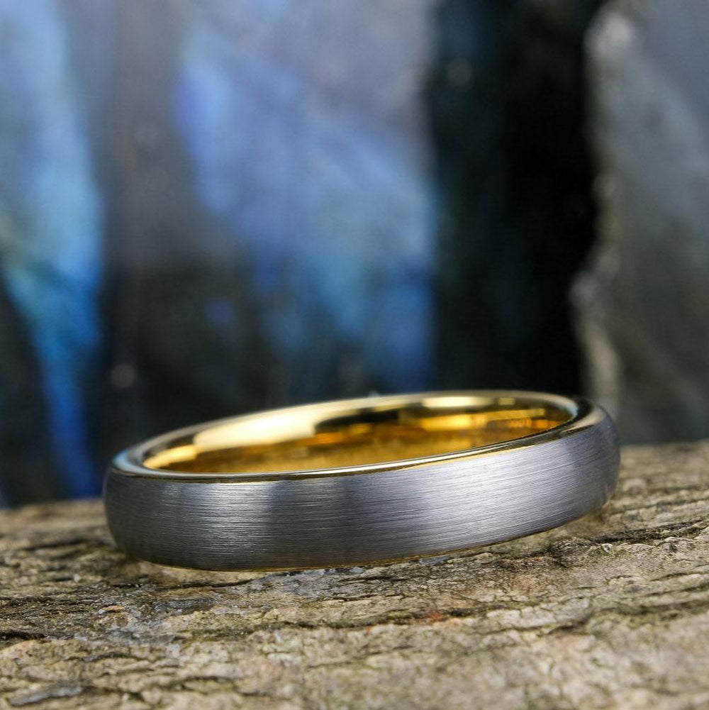 Brushed Silver Band / Yellow Gold Interior - 4mm