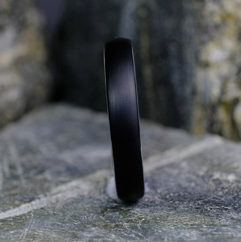 Elevate your style with the refined contrast and exceptional durability of our Classic Brushed Black Tungsten Carbide Unisex Band with Silver Interior. This 4mm wide ring is perfect for those who appreciate a sleek and sophisticated accessory with a modern touch.