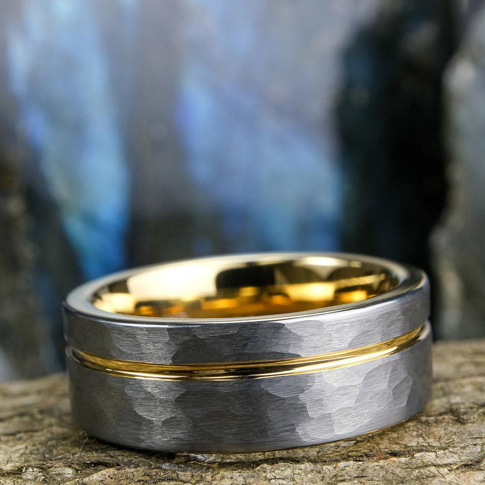 Silver Hammered / Yellow Gold Stripe & Interior - 8mm